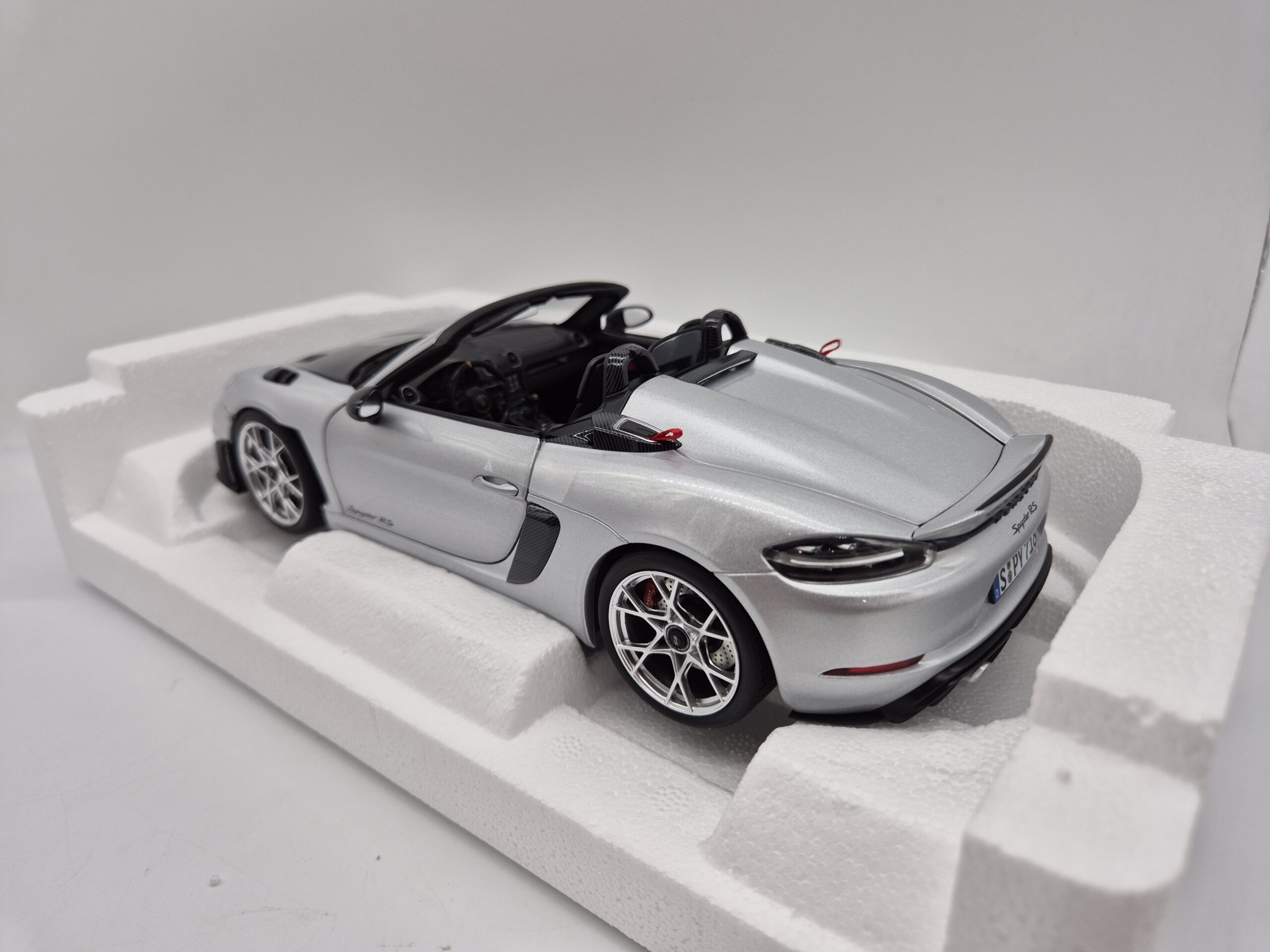 Norev Models 1.18 Porsche 718 Spyder RS 2023 Weissach pack Silver metallic colour (187270 )